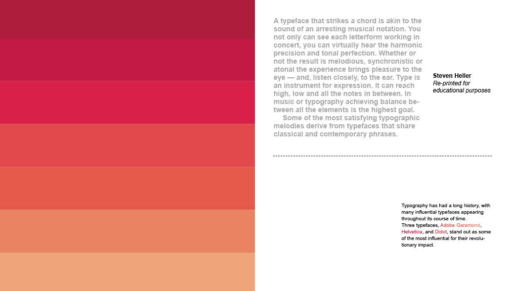 For the final in this class, we were tasked to create a book that showcased typography as one of the most important aspects of graphic design. This book showcases three fonts, alongside a meticulously crafted and laid out book design.